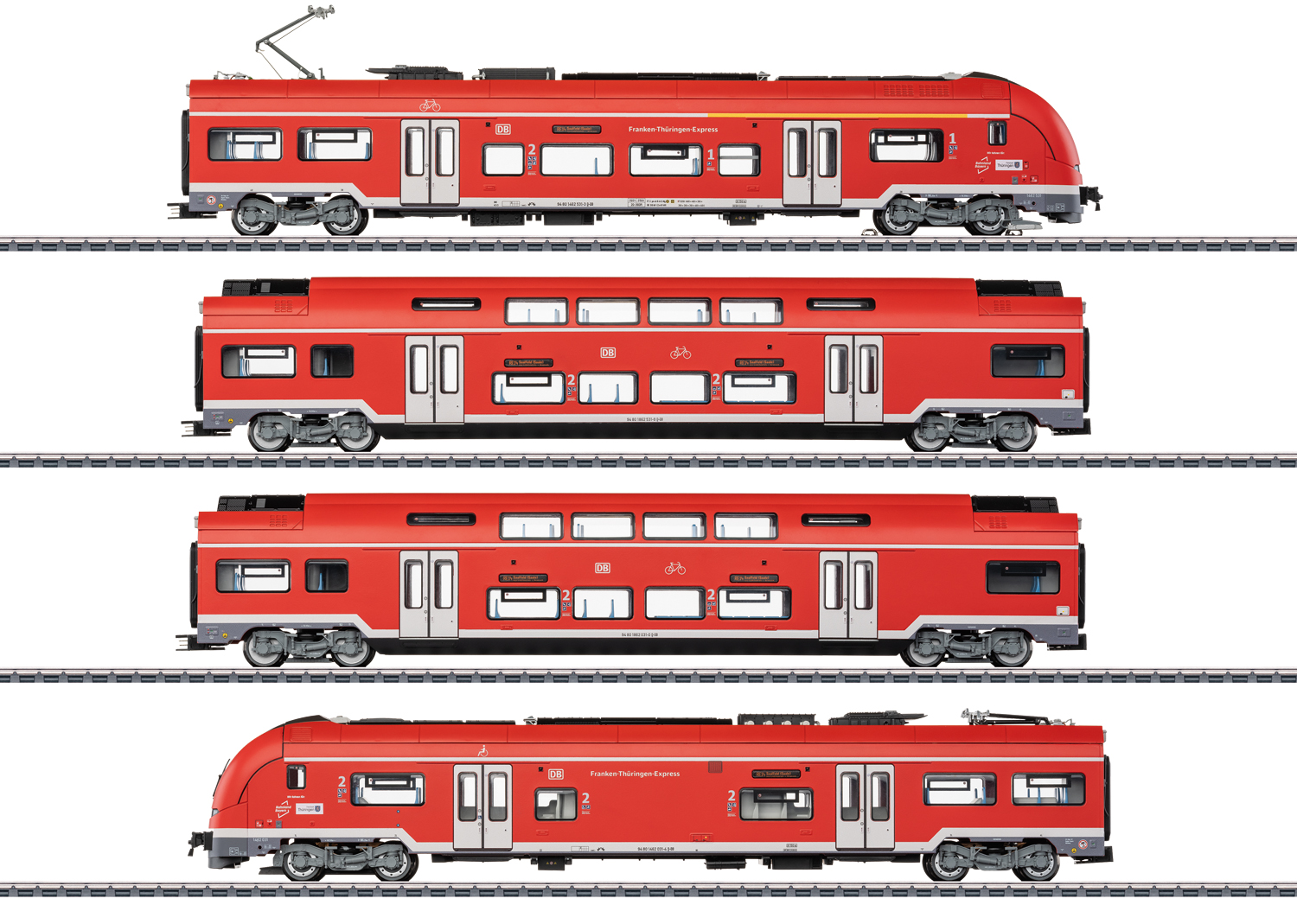 Prototype: German Railroad, Inc. (DB AG) Siemens Desiro HC electric powered train as the class 1462/1862. One class 1462.0 end car, 2nd class, one class 1862.0 intermediate car, 2nd class, one class 1862.5 intermediate car, 2nd class, and one class 1462.5 end car, 1st/2nd class. The train is part of the Franconian-South Thuringian Network. Traffic red basic paint scheme. The train looks as it did starting in December of 2023.