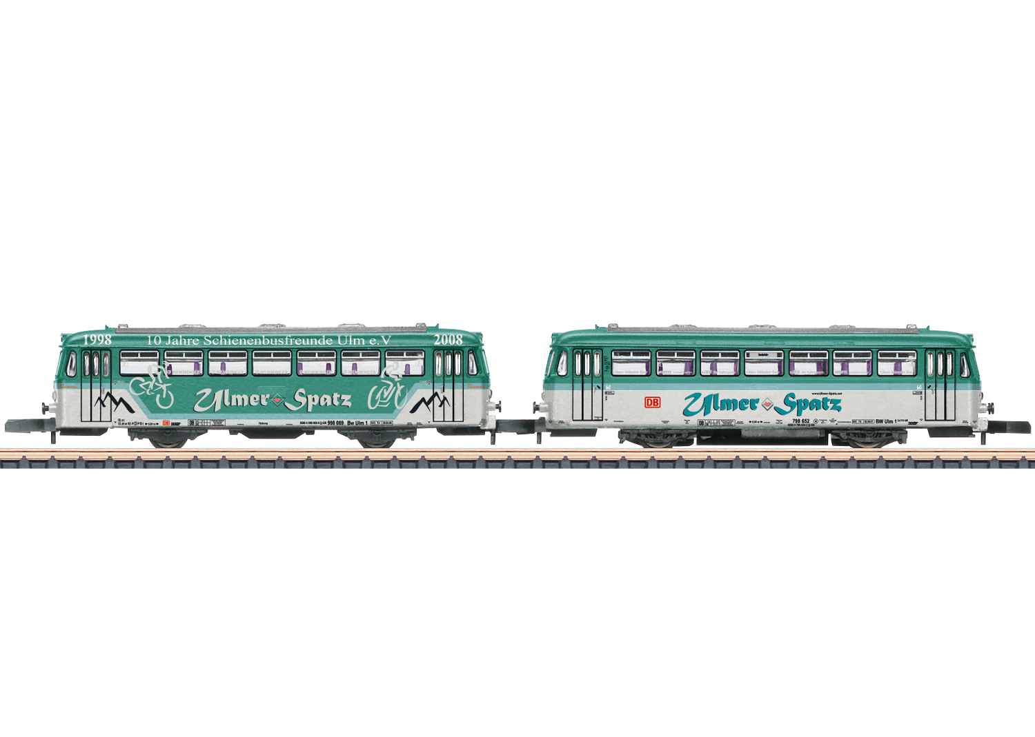 Prototype: DB Regio (DB AG) class 798 motor car and class 998 trailer car featuring the “Ulmer Spatz” (Ulm Sparrow) design from era VI around 2008.